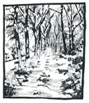 2016Bomen, getekend met inkt, geelwortel en geoxideerd koper.