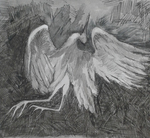 2016Zwaan onder water, getekend met inkt, roest en geoxideerd koper
