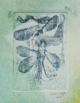 2015Waterelfjes in de sloot. Ets op een achtergrond van gouache. Oplage van 30.